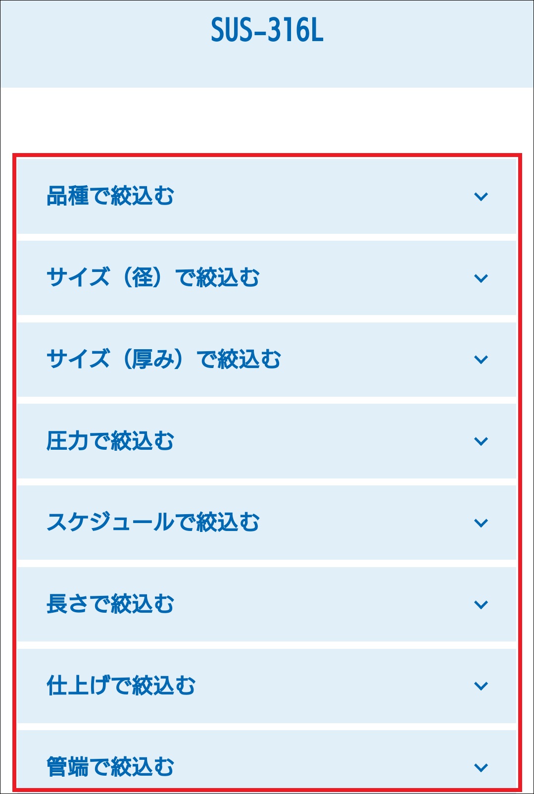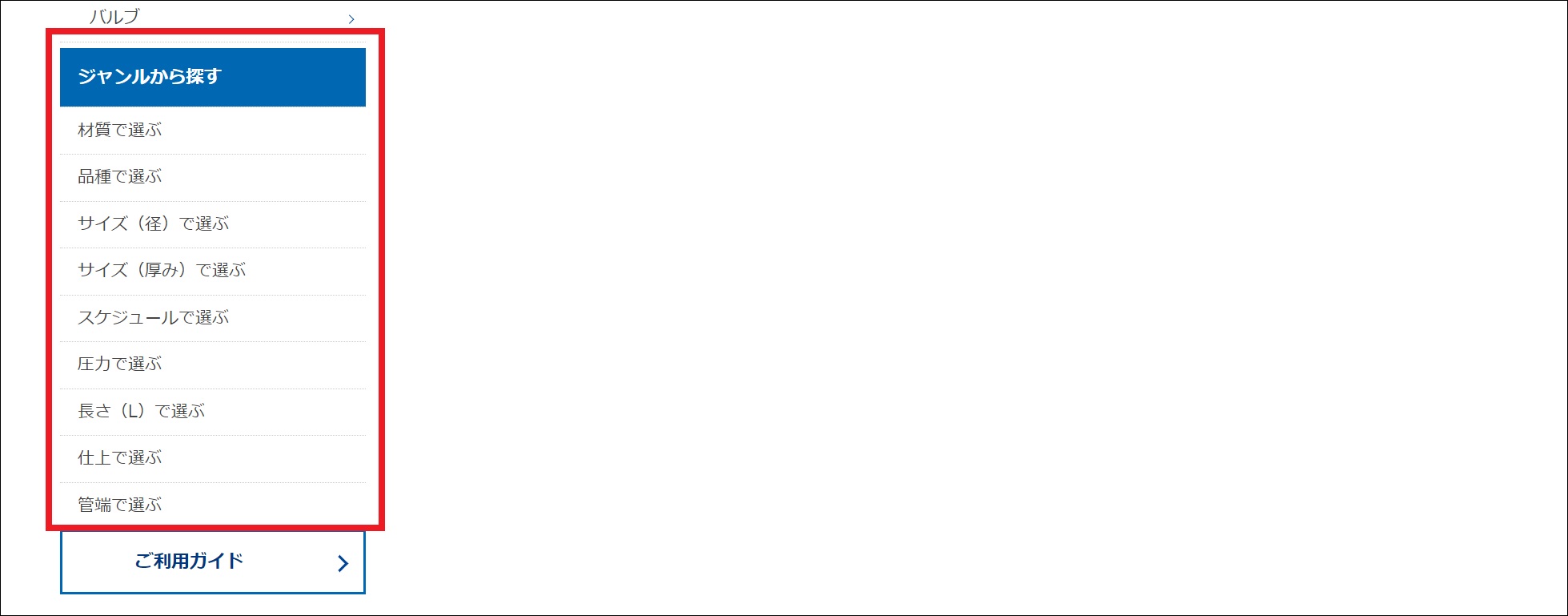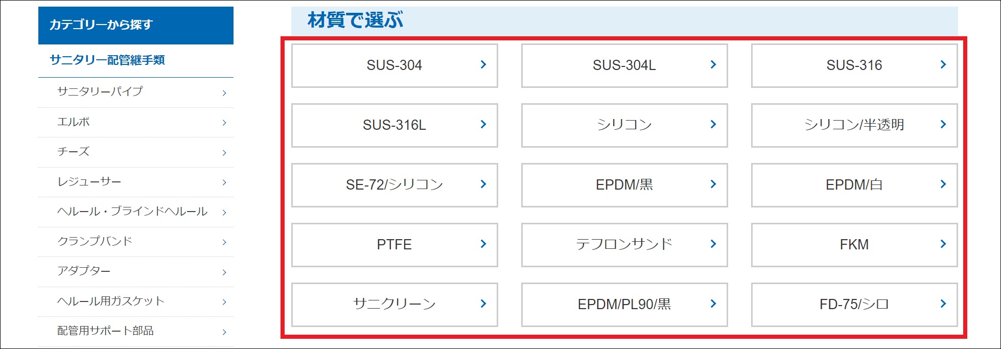 - ジャンル別一覧(例「材質で選ぶ」選択時)